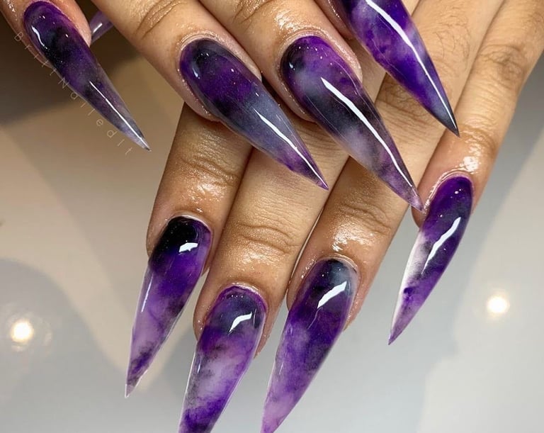 Each set looks slightly different, which adds to its magic — no two witchy marble nails are ever the same. For an even more luxe finish, accent one or two nails with gold foil or crystal embellishments.