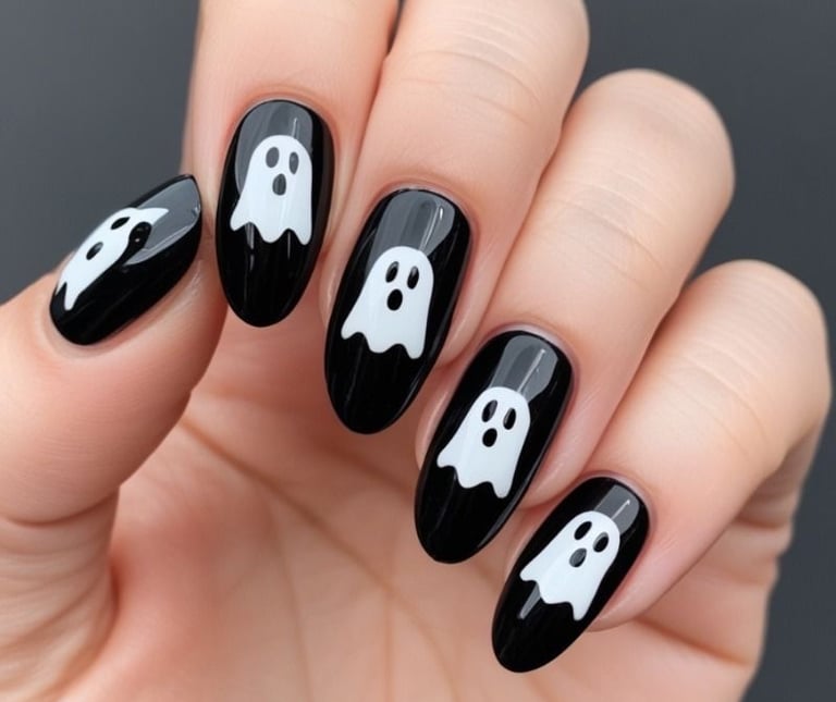 The aura nail trend continues strong in 2025, but with a spooky twist. Ghostly aura nails feature sheer, fog-like gradients of white, gray, and silver to create a haunted illusion. Some nail artists add tiny ghost faces or subtle holographic shimmer for a supernatural glow.