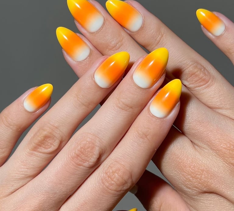 Bringing in a bit of nostalgia, candy corn ombre nails are making a sweet comeback in 2025. The gradient from bright orange to yellow and white adds a cheerful Halloween feel while still looking polished.