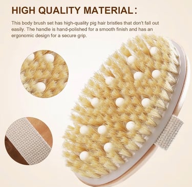 The AIFEIVOCO Dry Brushing Body Brush is designed with natural bristles and a sturdy wooden handle that allows you to easily reach difficult areas like the back and shoulders.