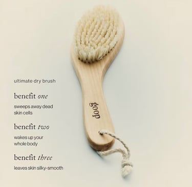 The goop Beauty Dry Brush & Body Oil Bundle combines dry brushing with nourishing body oil to create a complete glowing skin routine.