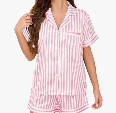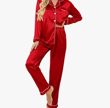 This classic satin button-down pajama set is timeless, romantic, and effortlessly elegant. The long sleeves and silky finish make it feel luxurious and perfect for Valentine’s night. For Galentine’s, it creates a polished yet cozy look that feels elevated and Instagram-worthy. For couples Valentine’s, this set is the ultimate choice for a romantic night in — classy, soft, and undeniably beautiful.