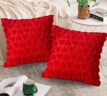 Throw pillows in shades of red, blush, and pink instantly transform your couch or bed into a Valentine’s Day sanctuary. They add softness, comfort, and a visual reminder of affection.