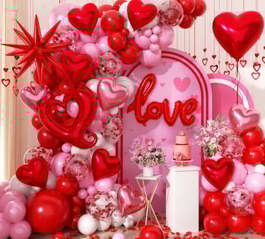 Heart balloon garlands instantly scream celebration of love. They’re bold, playful, and joyful — perfect for walls, photo backdrops, or dining areas.