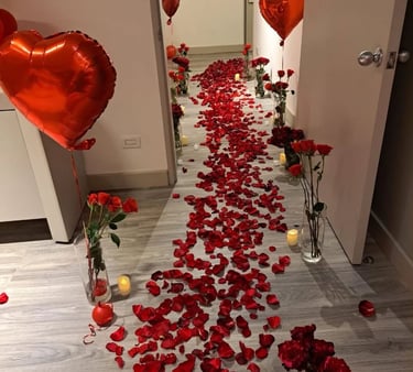Rose petals scattered across tables, beds, or bathtubs instantly signal romance. They represent passion, tenderness, and deep emotional intention.