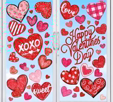 Window clings add a playful, cheerful expression of love that brightens your space both inside and out. Hearts, cupids, and love messages let the world know your home is filled with romance.