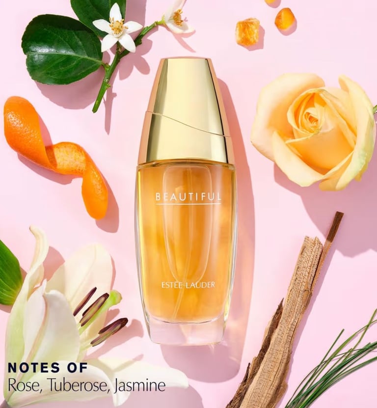 Estée Lauder Beautiful is a classic floral fragrance that embodies romance, femininity, and grace. It opens with lush white florals and soft rose, creating an elegant bouquet that feels rich, warm, and effortlessly beautiful. As it dries down, creamy sandalwood adds depth, making this perfume feel comforting yet sophisticated.