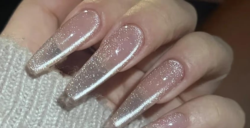 Cat magnetic eye nails feel bold, mesmerizing, and magnetic—literally. This holographic glitter effect symbolizes transformation, mystery, and undeniable presence. It’s for women entering 2026 fully aware of their power and unafraid to shine in every room they walk into. The shifting light effect captures attention instantly, making it the perfect manicure for stepping into your main-character era.