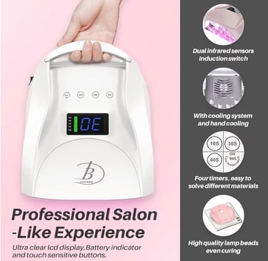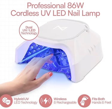A hybrid UV/LED lamp that delivers salon-quality curing for gel nails, with a rechargeable and wireless design for ultimate convenience.