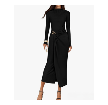 A black long sleeve bodycon dress is a New Year’s Eve essential because it’s timeless, flattering, and effortlessly sexy. It hugs in all the right places and works perfectly with sparkly accessories, statement earrings, and bold makeup for a confident midnight look.